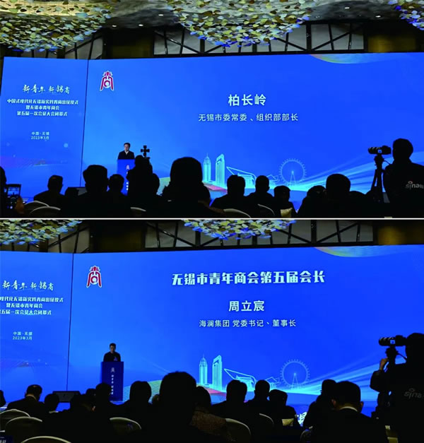 无锡市委常委、组织部部长柏长岭,无锡市青商会第五届会长、海澜集团党委书记周立宸发表讲话。